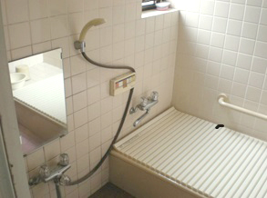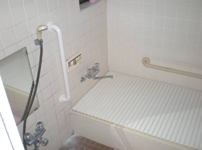 手すり取付前は、浴槽への出入りや立上りなどの際に、滑って転倒する危険がありました。