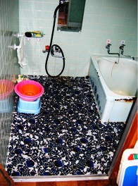 昔からあるタイル張りの浴室でした。