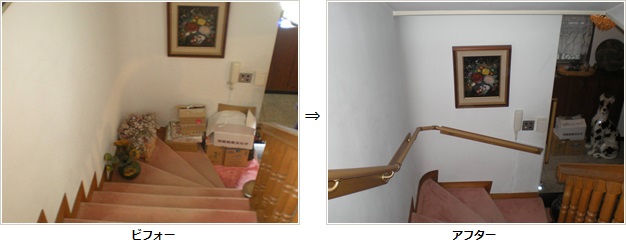 - 階段 転落事故を防ぐために設置します。利き腕の使用が困難になる場合も考えて、両サイドに設置すると、より 効果的です。